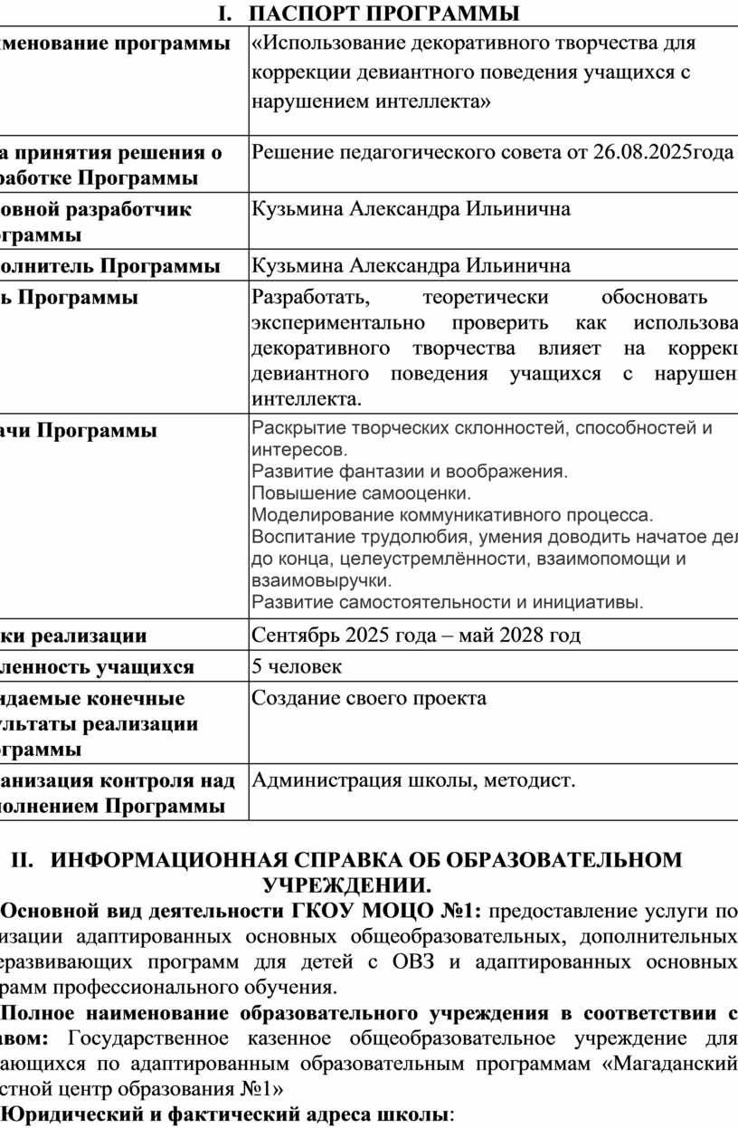 Полное наименование образовательного учреждения в соответствии с Уставом: Государственное казенное общеобразовательное учреждение для обучающихся по адаптированным образовательным программам «Магаданский областной центр образования №1»