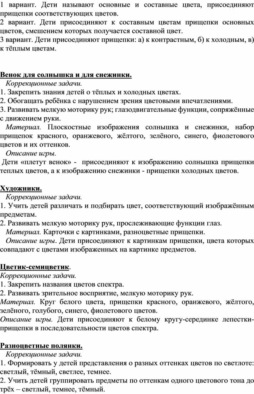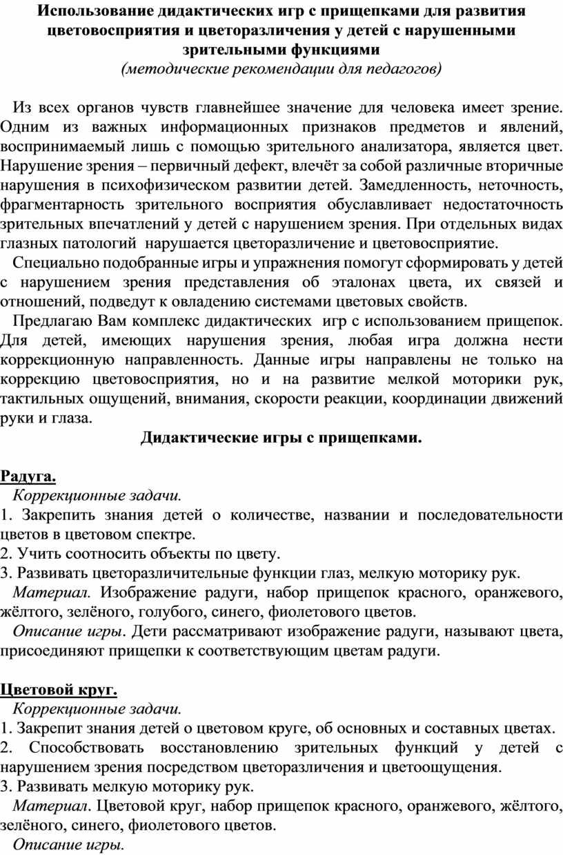 Использование дидактических игр с прищепками для развития цветовосприятия и цветоразличения у детей с нарушенными зрительными функциями