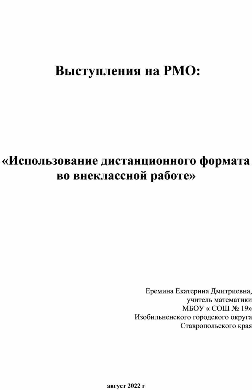 «Использование дистанционного формата во внеклассной работе»