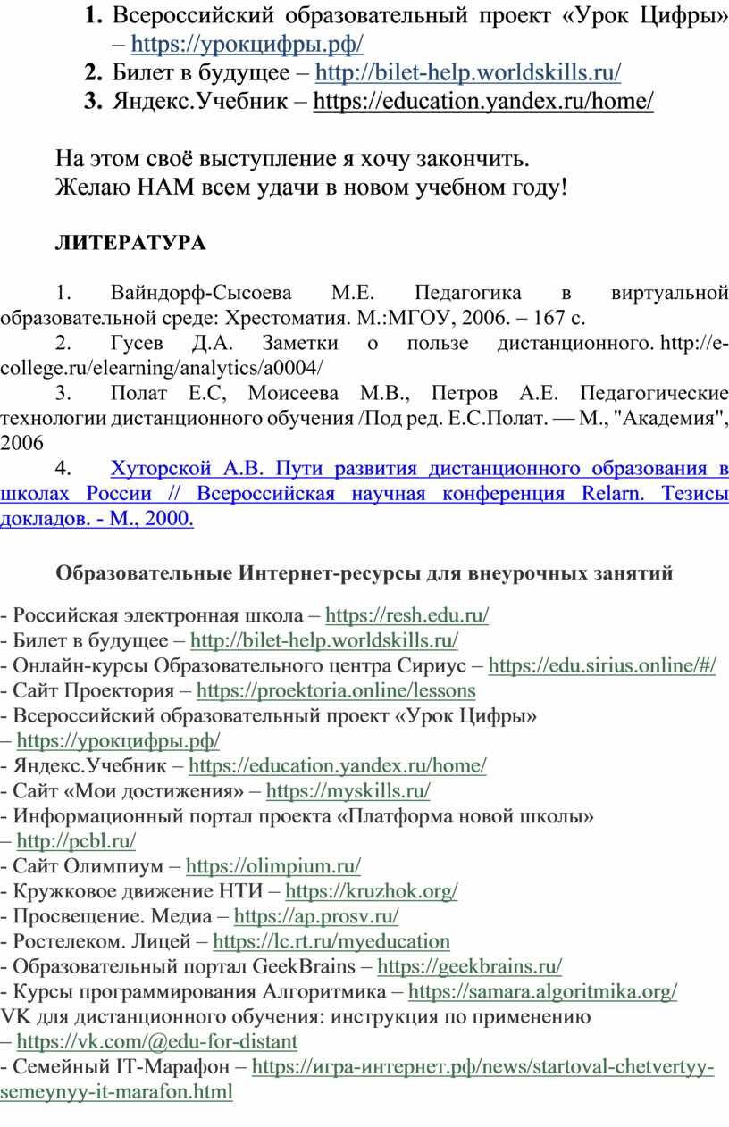 5. Всероссийский образовательный проект «Урок Цифры» – https://урокцифры.рф/