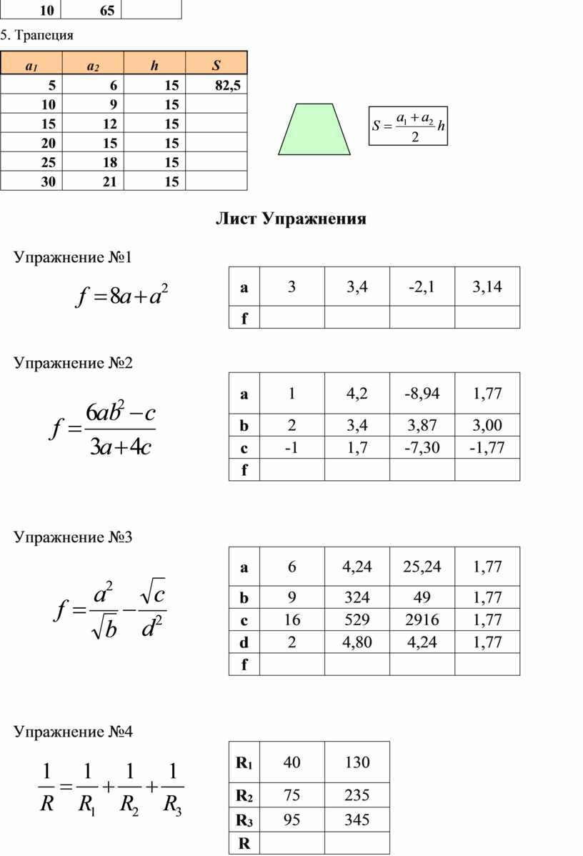 4. При вычислении по формулам учитываются приоритеты выполнения операций: возведение в степень ( ^ ), умножение и деление ( * и / ), сложение и вычитание (+ и –). Для изменения приоритета необходимо использовать круглые скобки ( ).
