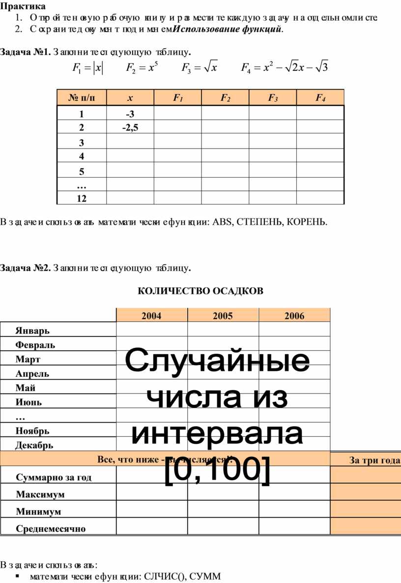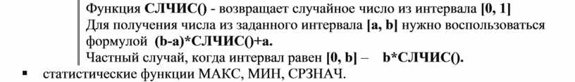 Функция СЛЧИС() - возвращает случайное число из интервала [0, 1]