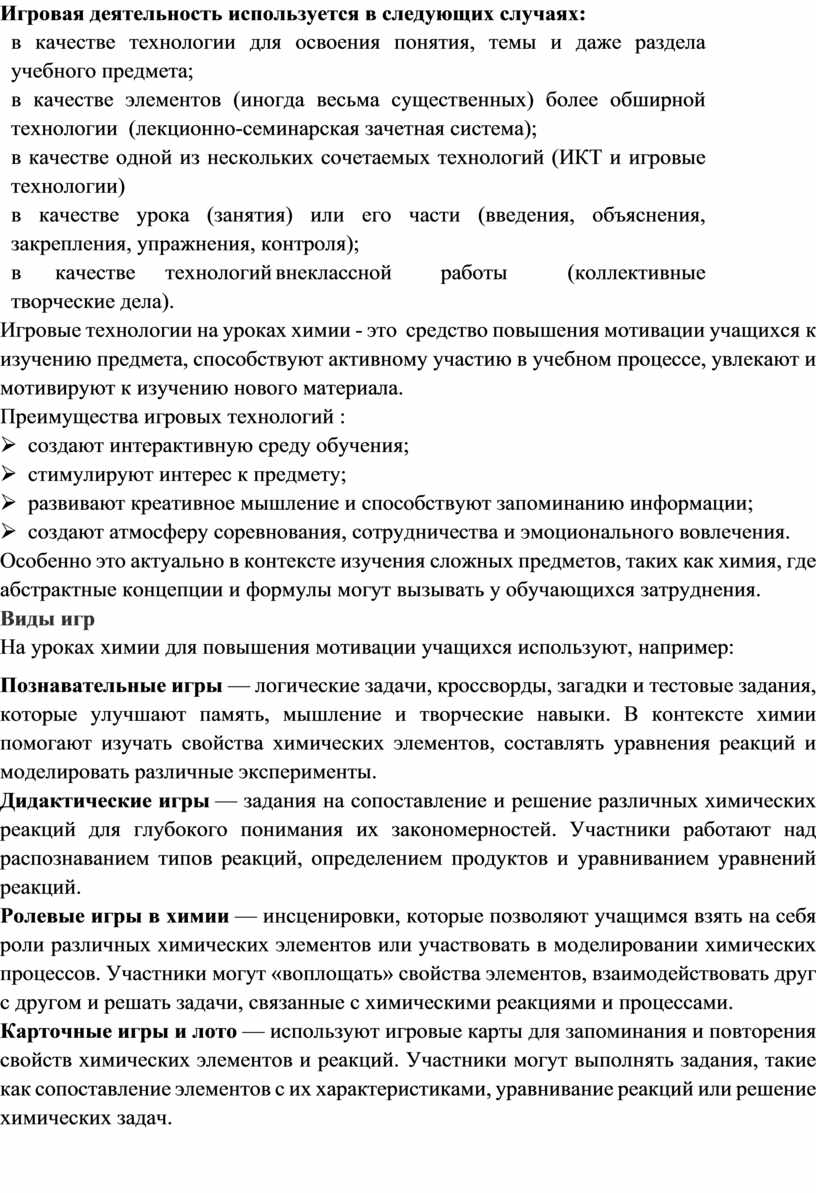 Игровые технологии на уроках химии - это средство повышения мотивации учащихся к изучению предмета, способствуют активному участию в учебном процессе, увлекают и мотивируют к изучению нового материала.