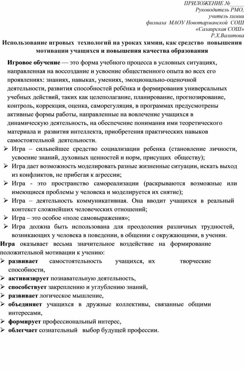 Использование игровых технологий на уроках химии, как средство повышения мотивации учащихся и повышения качества образования