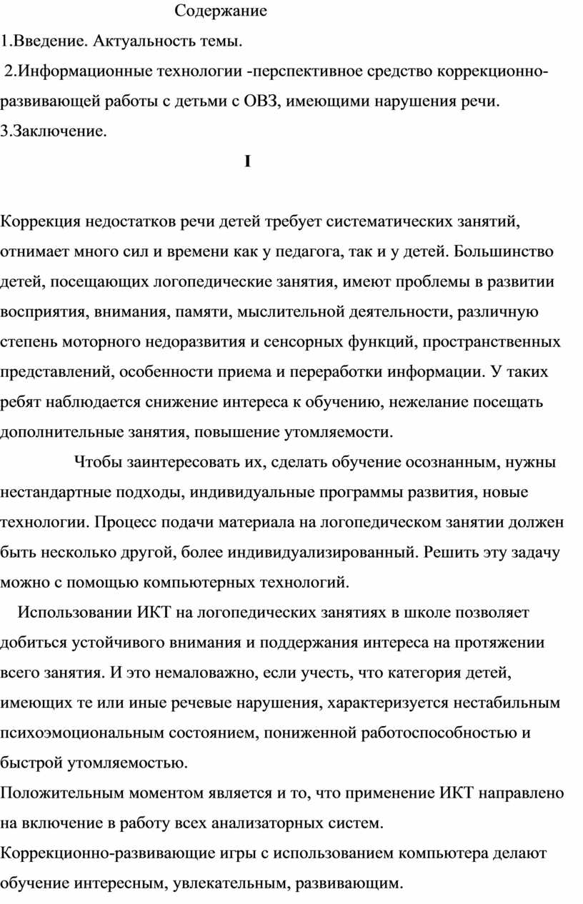 Информационные технологии в последнее время стали перспективным средством коррекционно-развивающей работы с детьми, имеющими нарушения речи. Повсеместная компьютеризация открывает новые, еще не исследованные варианты обучения. Они связаны с уникальными возможностями современной электроники и телекоммуникаций.