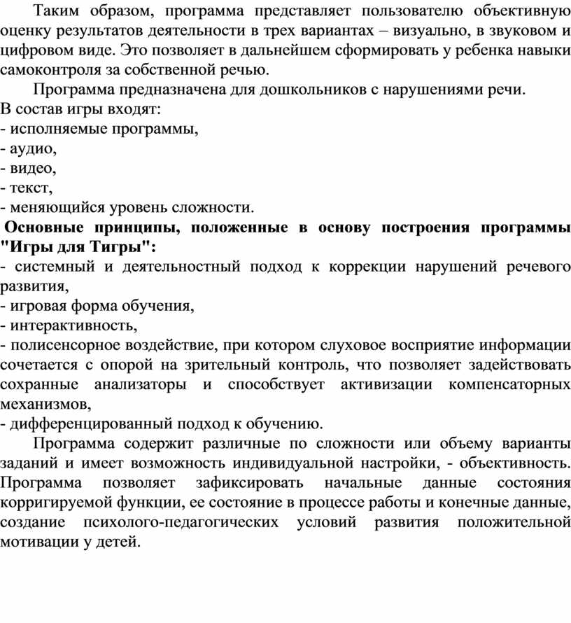 Основные принципы, положенные в основу построения программы "Игры для Тигры":