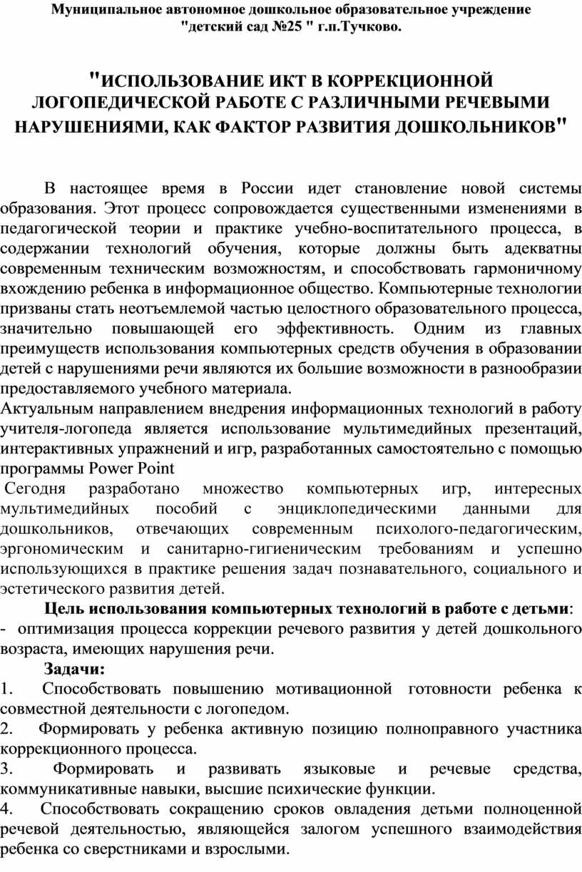 "ИСПОЛЬЗОВАНИЕ ИКТ В КОРРЕКЦИОННОЙ ЛОГОПЕДИЧЕСКОЙ РАБОТЕ С РАЗЛИЧНЫМИ РЕЧЕВЫМИ НАРУШЕНИЯМИ, КАК ФАКТОР РАЗВИТИЯ ДОШКОЛЬНИКОВ"