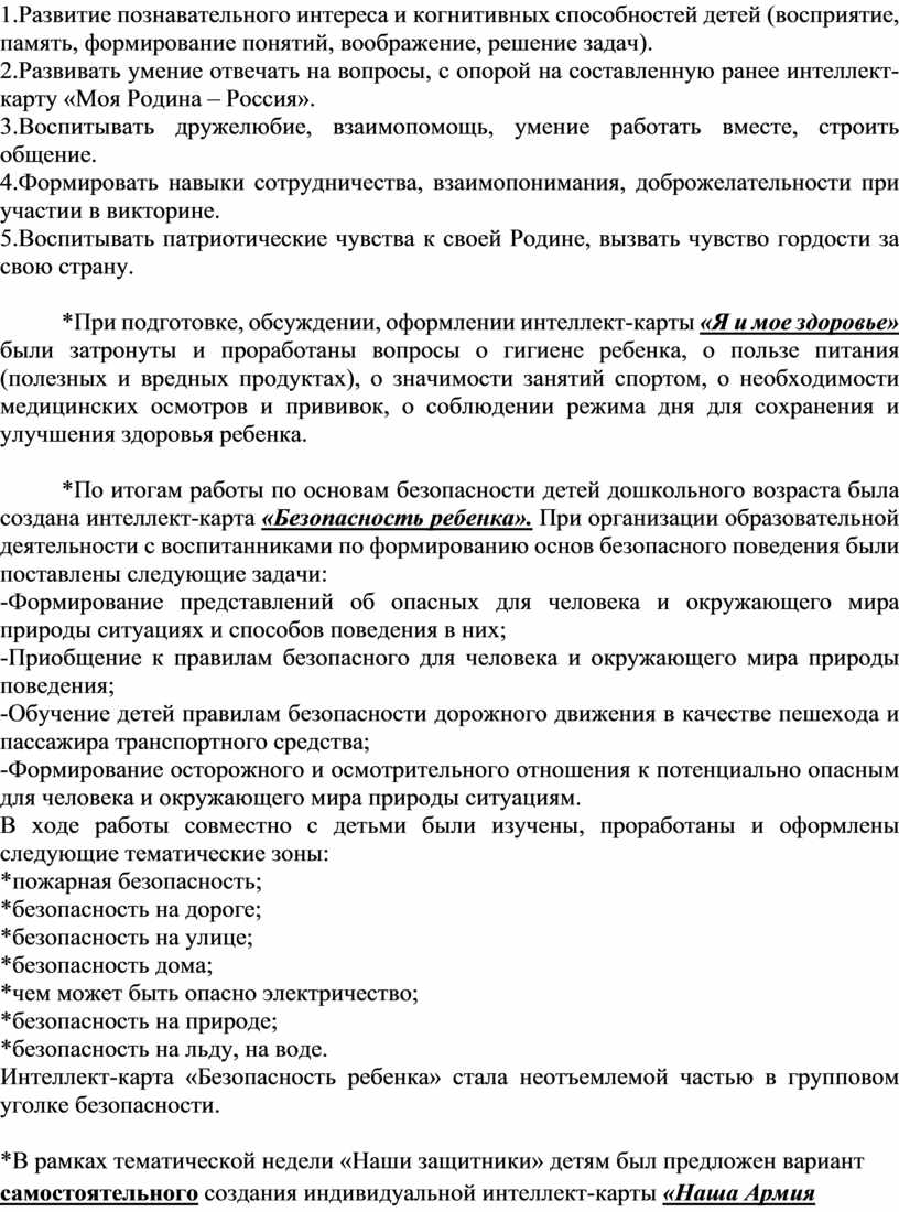Актуальность. Цель составления интеллект-карт – собрать информацию о предмете, объекте или явлении. Во время составления карты педагоги с дошкольниками рассуждают, пополняют словарный запас, анализируют, синтезируют и обобщают сведения.