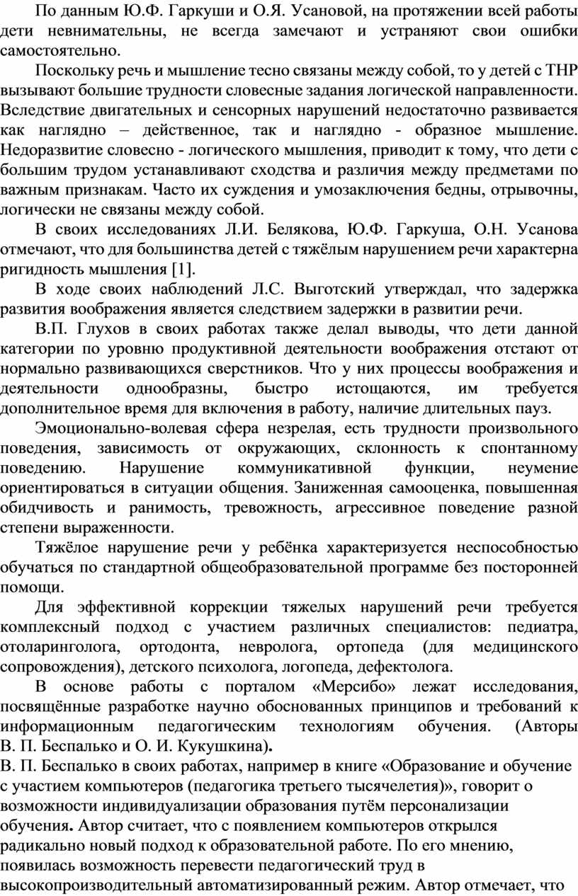 1. Белякова, Л.И., Сравнительное психолого-педагогическое исследование дошкольников с общим недоразвитием речи и нормально развитой речью // Теория и практика коррекционного обучения дошкольников с речевыми нарушениями:/ Л.И. Белякова, Ю.Ф. Гаркуша, О.Н., Усанова, Э.Л. Фигередо. - Межвуз. сб. науч. тр. - М., 1991. - 72-87 с.