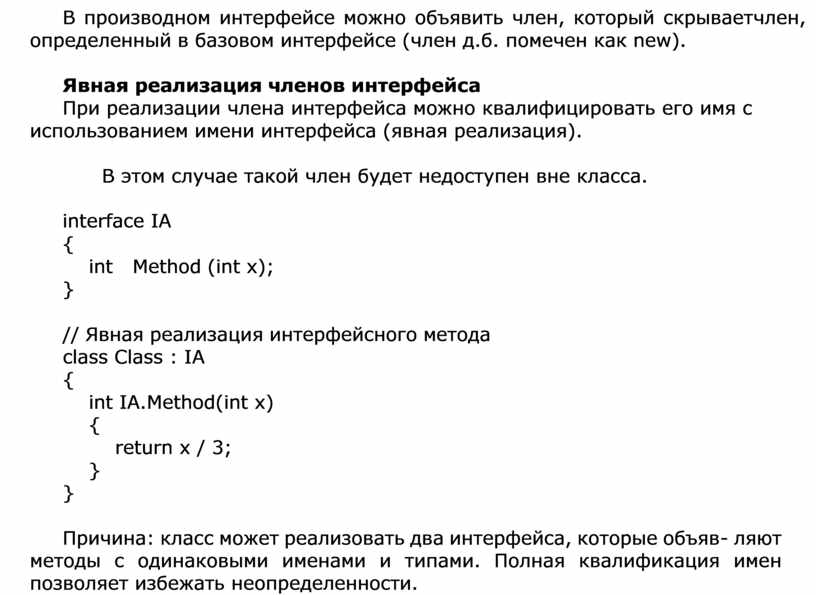 Явная реализация членов интерфейса