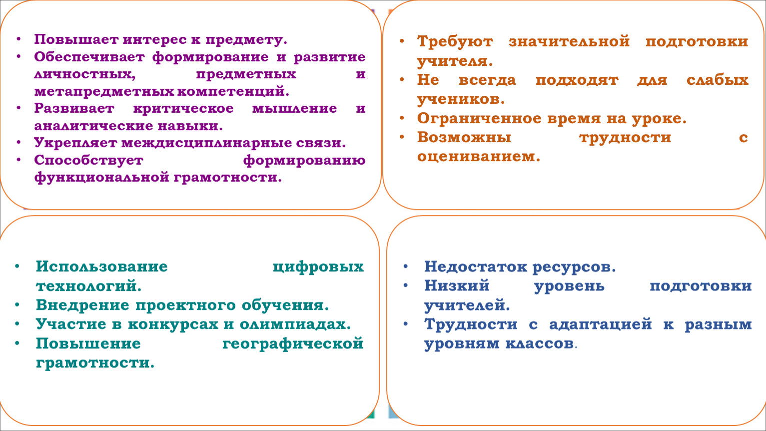 Требуют значительной подготовки учителя.