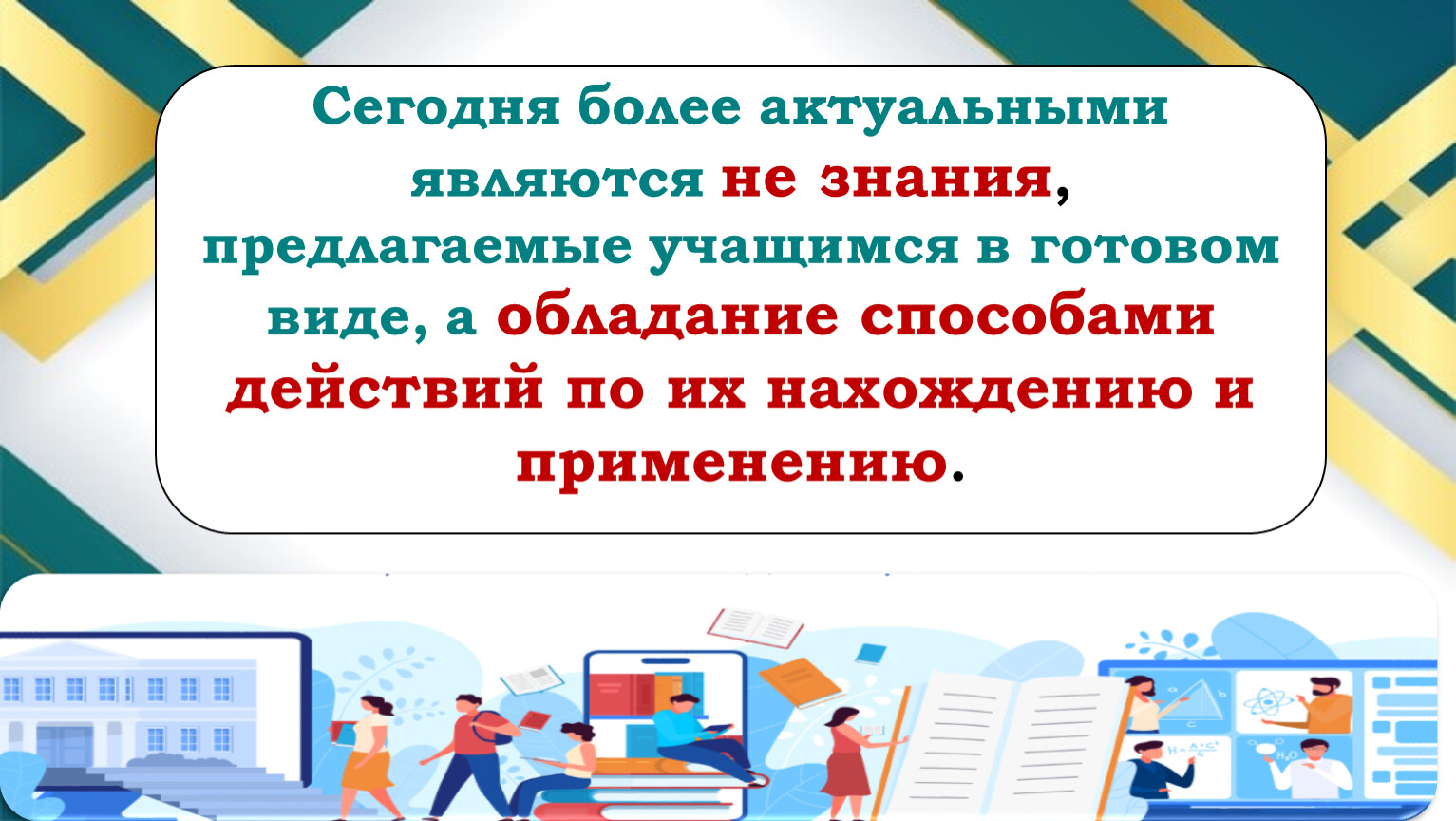 Сегодня более актуальными являются не знания, предлагаемые учащимся в готовом виде, а обладание способами действий по их нахождению и применению.