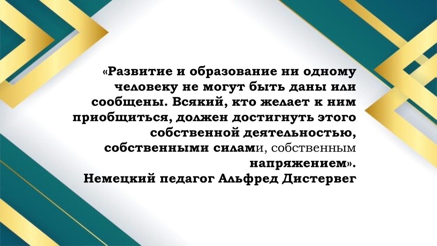 «Развитие и образование ни одному человеку не могут быть даны или сообщены. Всякий, кто желает к ним приобщиться, должен достигнуть этого собственной деятельностью, собственными силами, собственным напряжением».