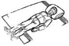 Лягте на спину. Выпрямленные ноги расположите так, чтобы расстояние между стопами было 15–18 см. Вытянутые руки расположите под острым углом к туловищу ладонями вверх.
