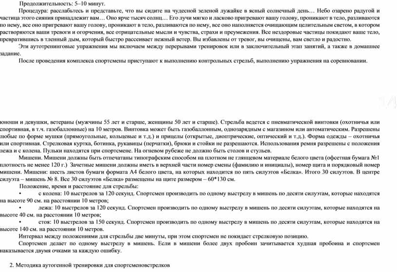 2. Методика аутогенной тренировки для спортсменовстрелков