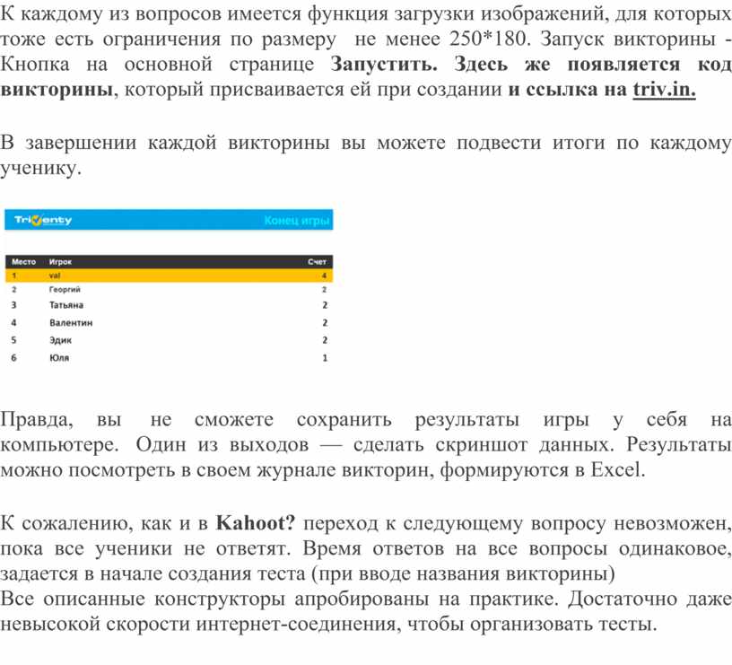 Правда, вы не сможете сохранить результаты игры у себя на компьютере. Один из выходов — сделать скриншот данных. Результаты можно посмотреть в своем журнале викторин, формируются в Excel.