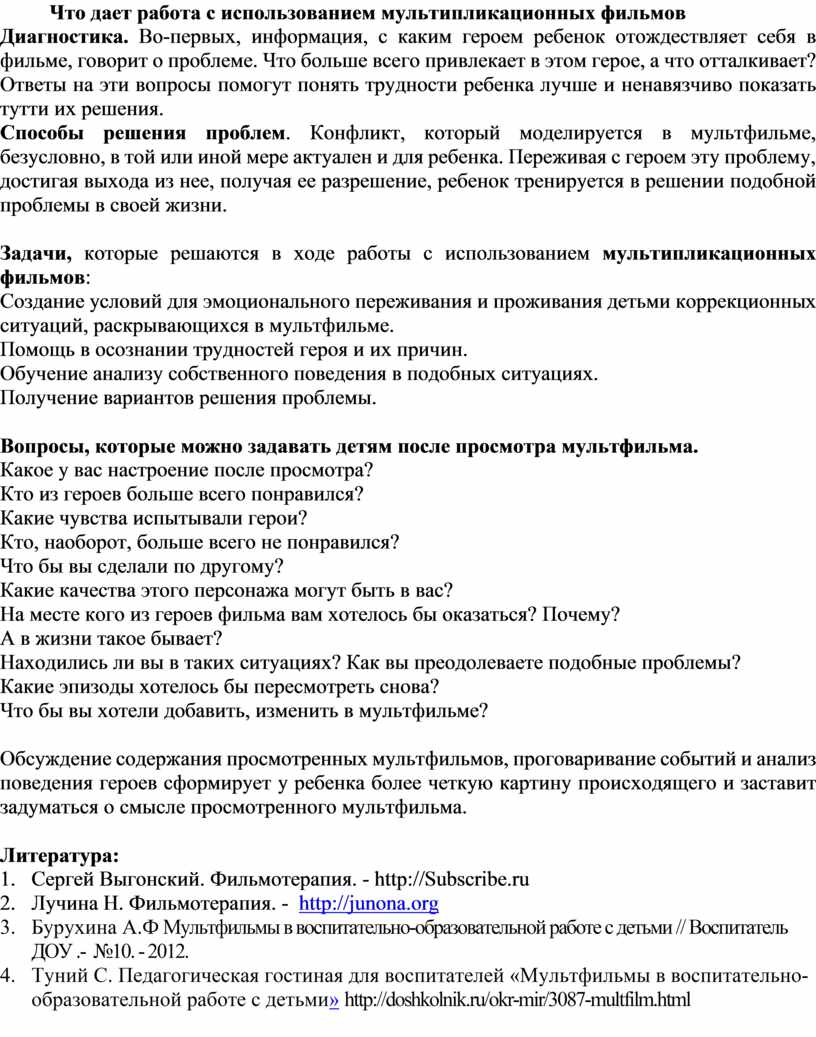 Что дает работа с использованием мультипликационных фильмов
