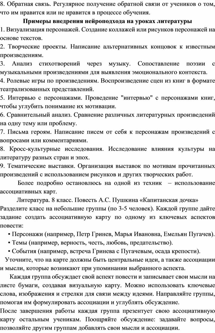 Использование ассоциативных карт не только способствует активному вовлечению учеников в процесс обучения, но и помогает им развивать навыки критического мышления и креативности. Такой подход делает изучение литературы более интерактивным и интересным, а также способствует лучшему запоминанию материала.
