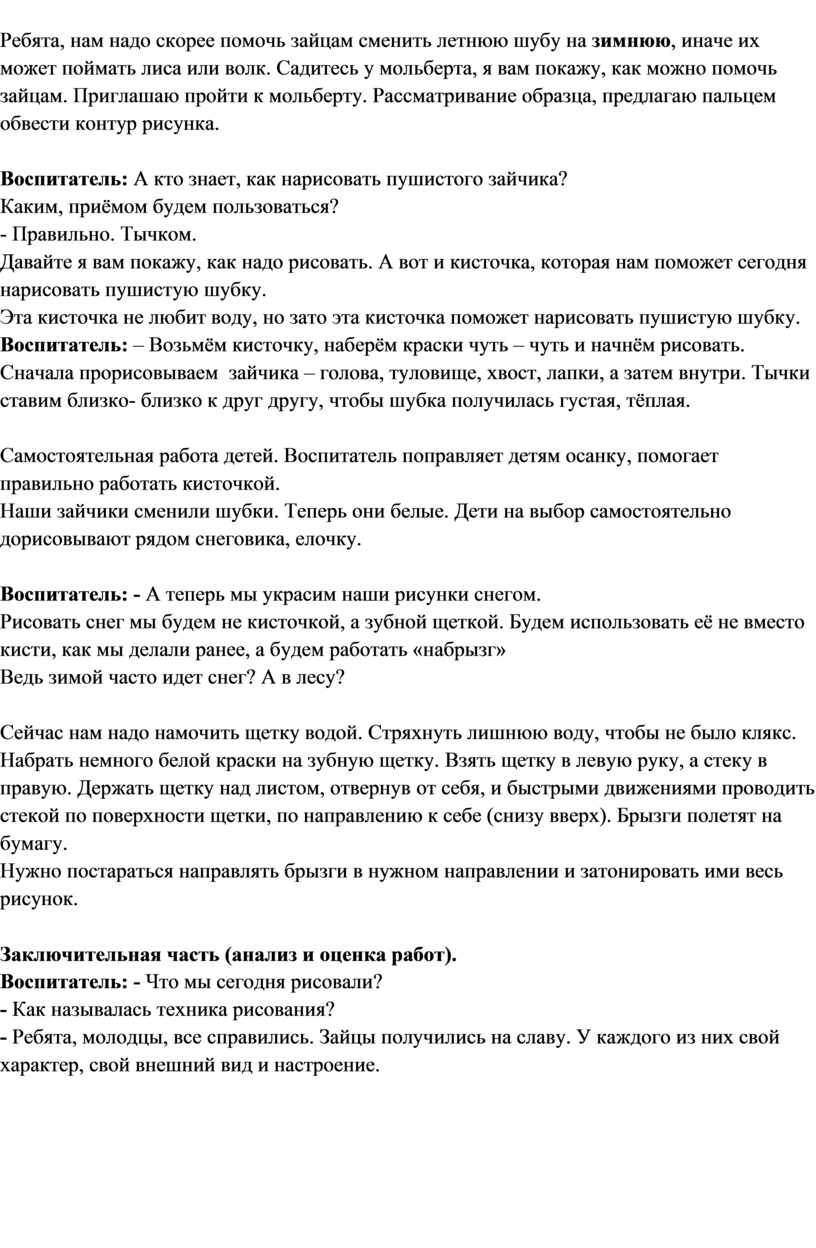 КОНСПЕКТ ЗАНЯТИЯ «ЗАЯЦ В ЗИМНЕМ ЛЕСУ» ДЛЯ ДЕТЕЙ С ОВЗ В ПОДГОТОВИТЕЛЬНОЙ ГРУППЕ С ИСПОЛЬЗОВАНИЕМ НЕТРАДИЦИОННОЙ ТЕХНИКИ РИСОВАНИЯ «НАБРЫЗГ» ЗУБНОЙ ЩЕТКОЙ