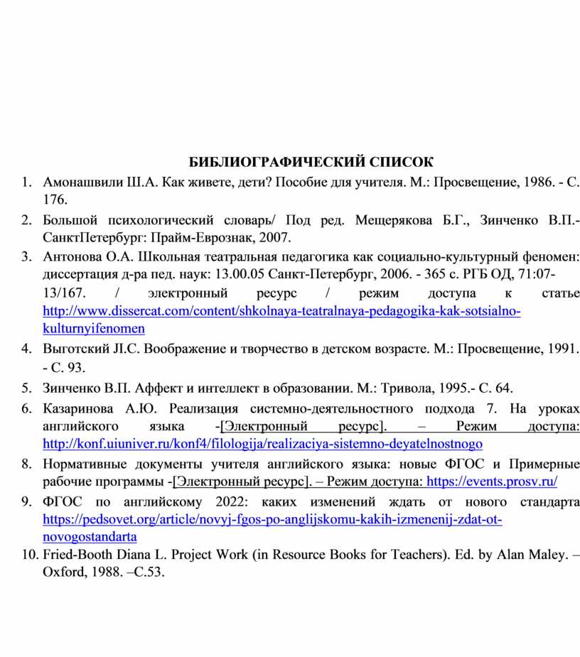 БИБЛИОГРАФИЧЕСКИЙ СПИСОК