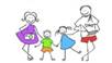 Mother, father, Sister, brother.( Мама, папа, сестра, брат) One, two, three, four( Один ,два, три, четыре). We're the family of four.(Мы- семья из четырех). |