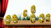 One potato, two potatoes (Одна картошка, две картошки,) Three potatoes, four, (Три картошки и четыре.) Five potatoes, six potatoes, (Пять картошек, шесть картошек,) Seven potatoes more. (А всего их семь в квартире.) |