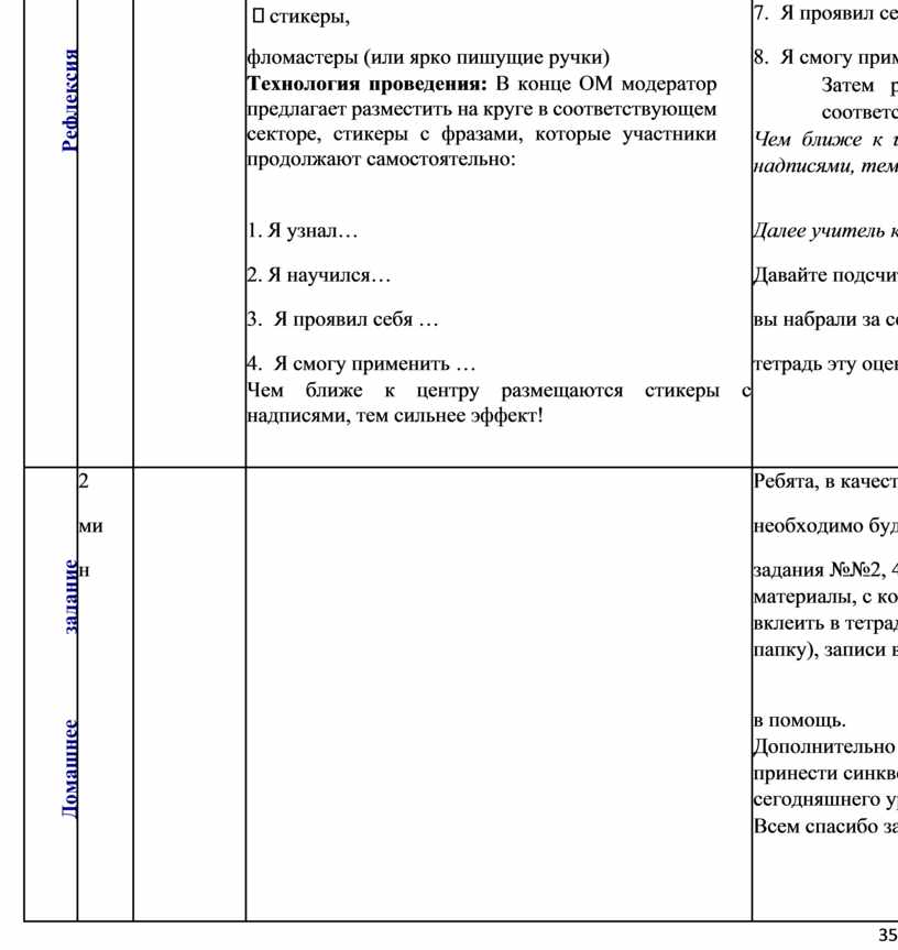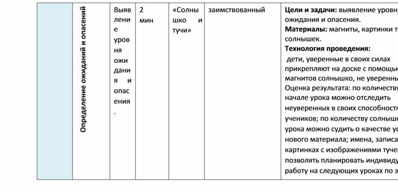 В завершении метода учитель подводит итоги выяснения ожиданий и опасений.