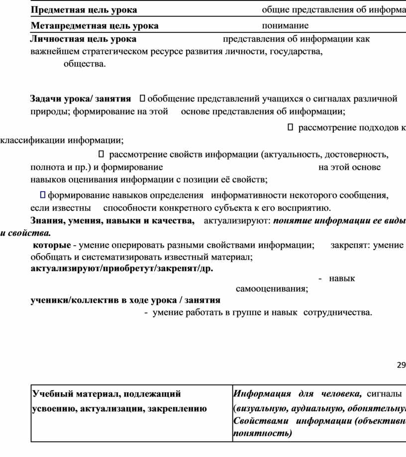 Свойствами информации (объективность, достоверность, полноту, актуальность, полезно), Результаты воспитания и социализации: |