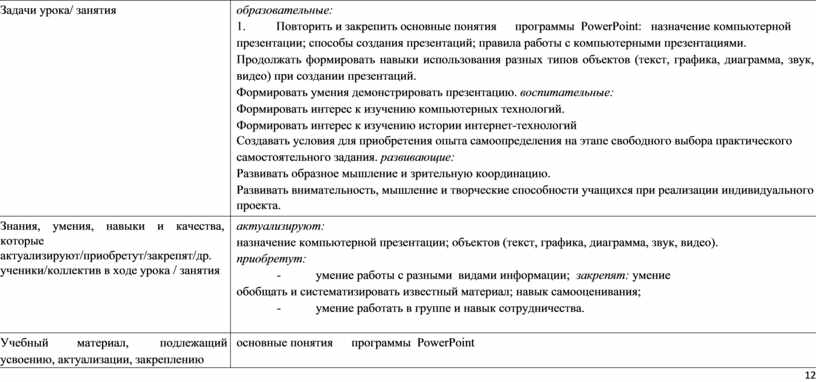 образовательные цели и задачи урока |