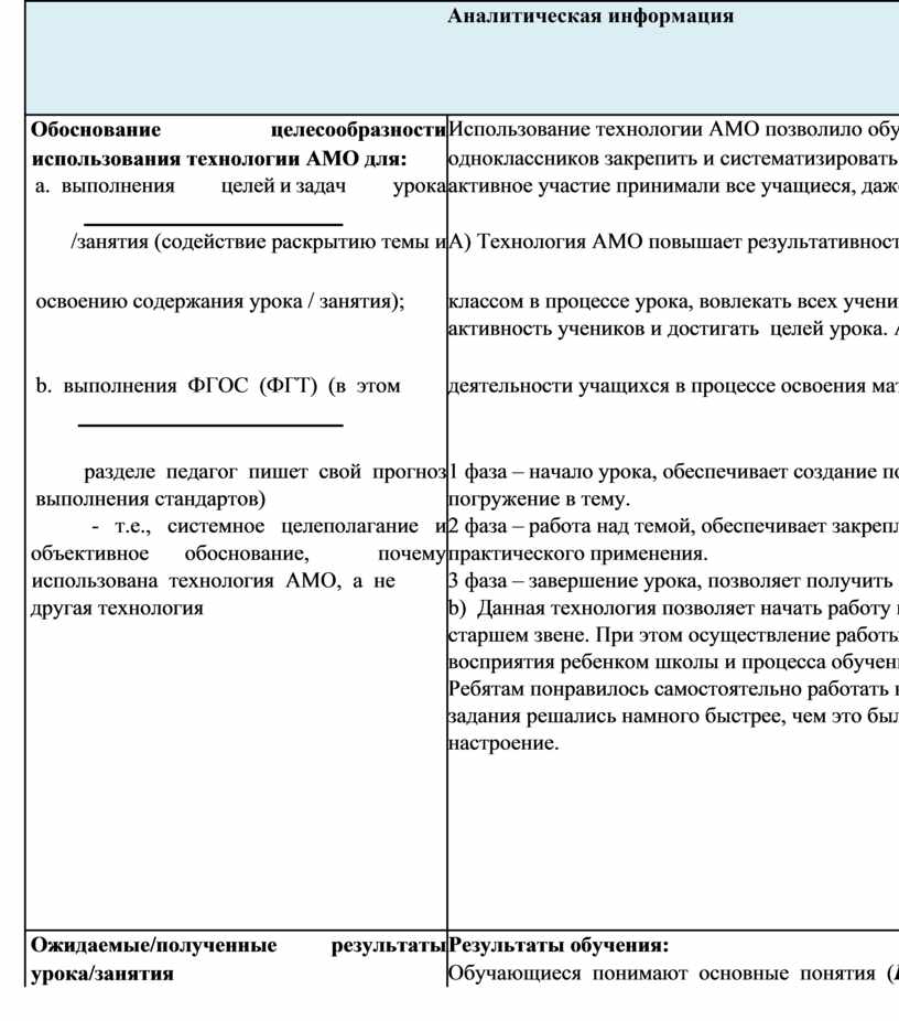 А) Технология АМО повышает результативность и качество урока. Данная технология позволяет управлять |