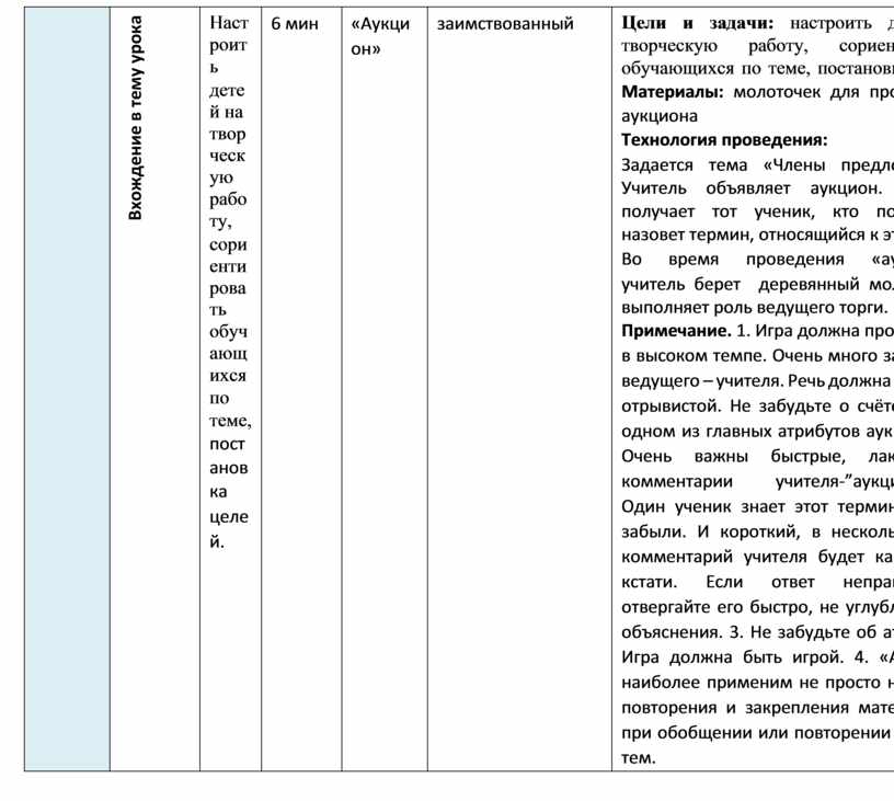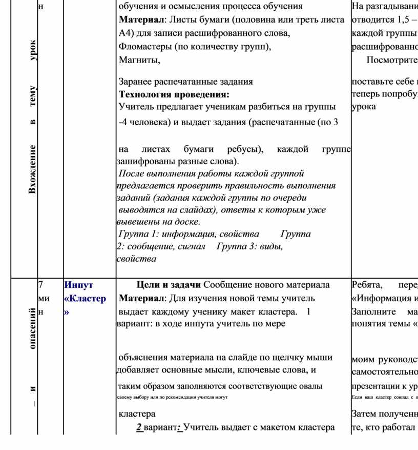 Время: зависит от объема нового материала и структуры урока. Материал: