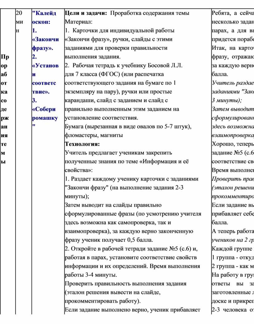 - интерактивная лекция (передача и объяснение информации); - проработка содержания темы (групповая работа обучающихся); Фаза 3. Завершение образовательного мероприятия.