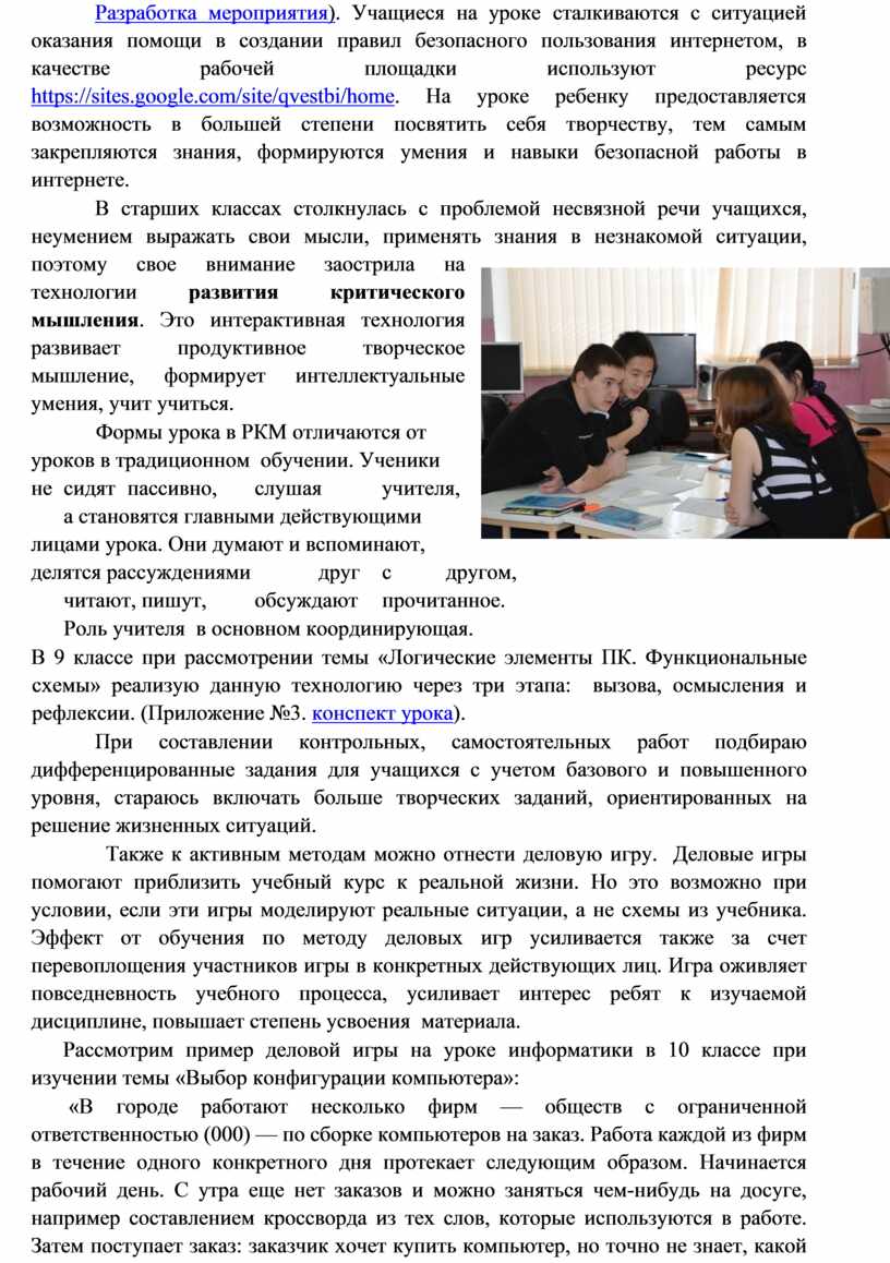 Примеры применения современных образовательных технологий на уроках информатики