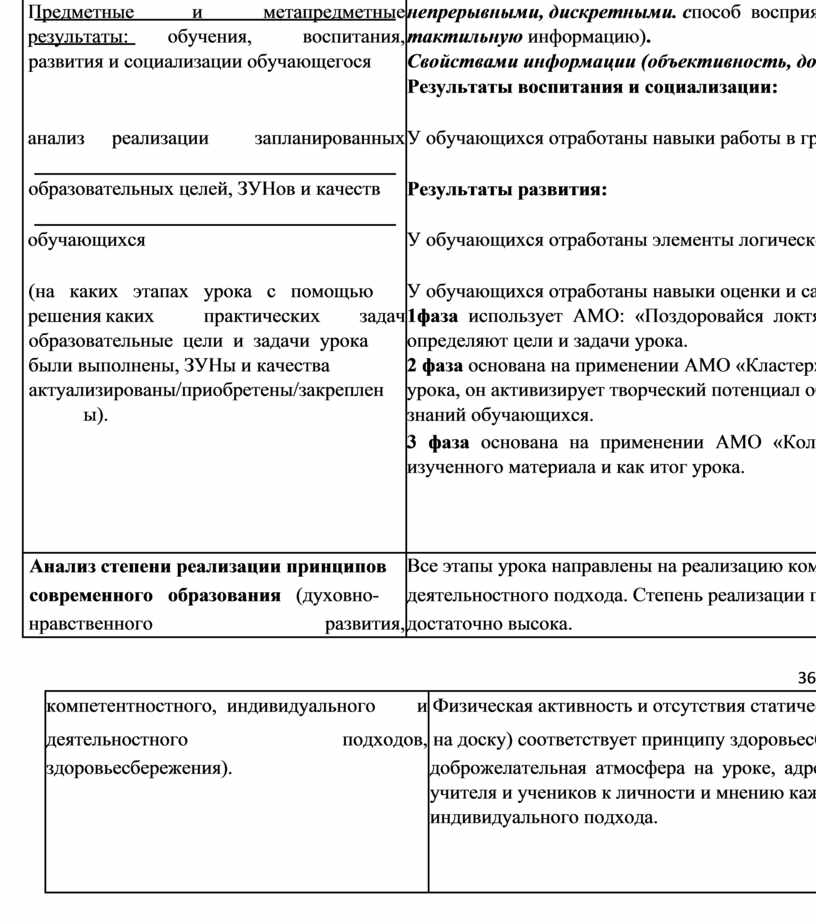 деятельностного подхода. Степень реализации принципов современного образования на данном уроке |
