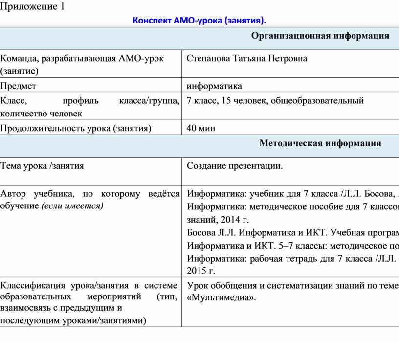 (Приложение №1: конспект урока).