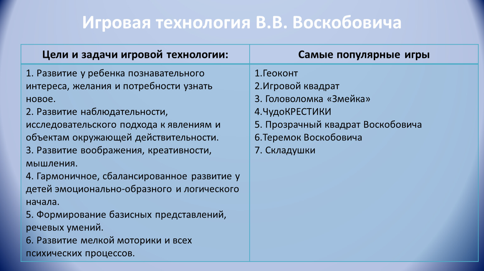 Игровая технология В.В. Воскобовича