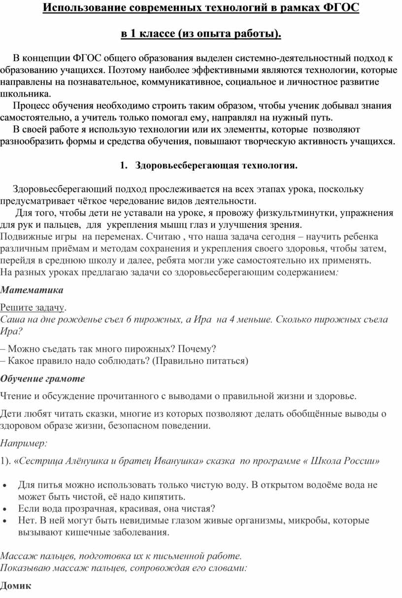 Использование современных технологий в рамках ФГОС