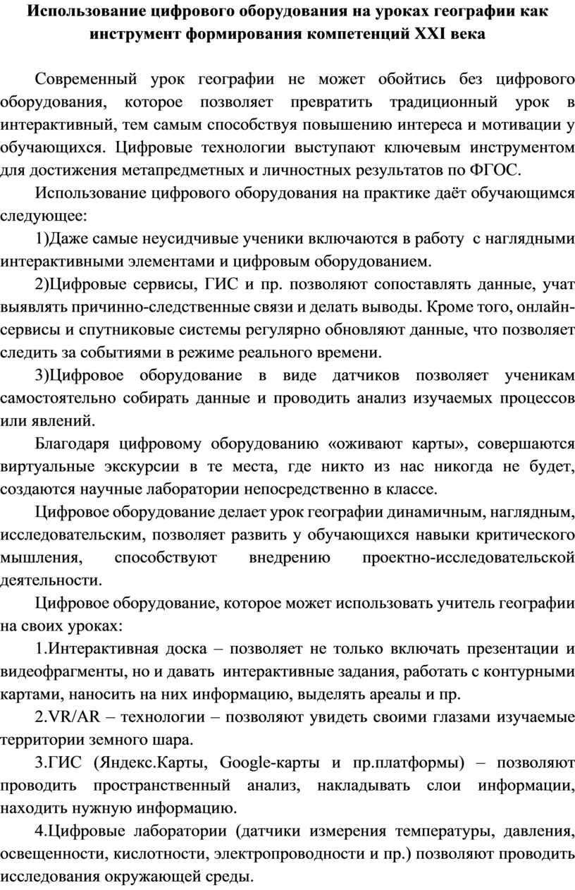 Использование цифрового оборудования на уроках географии как инструмент формирования компетенций XXI века