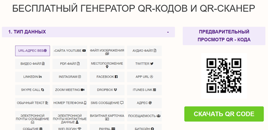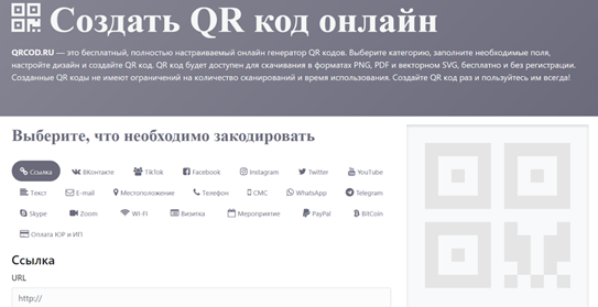 Для создания QR кода я использую 2 сайта http://qrcoder.ru/, https://qrcod.ru/.