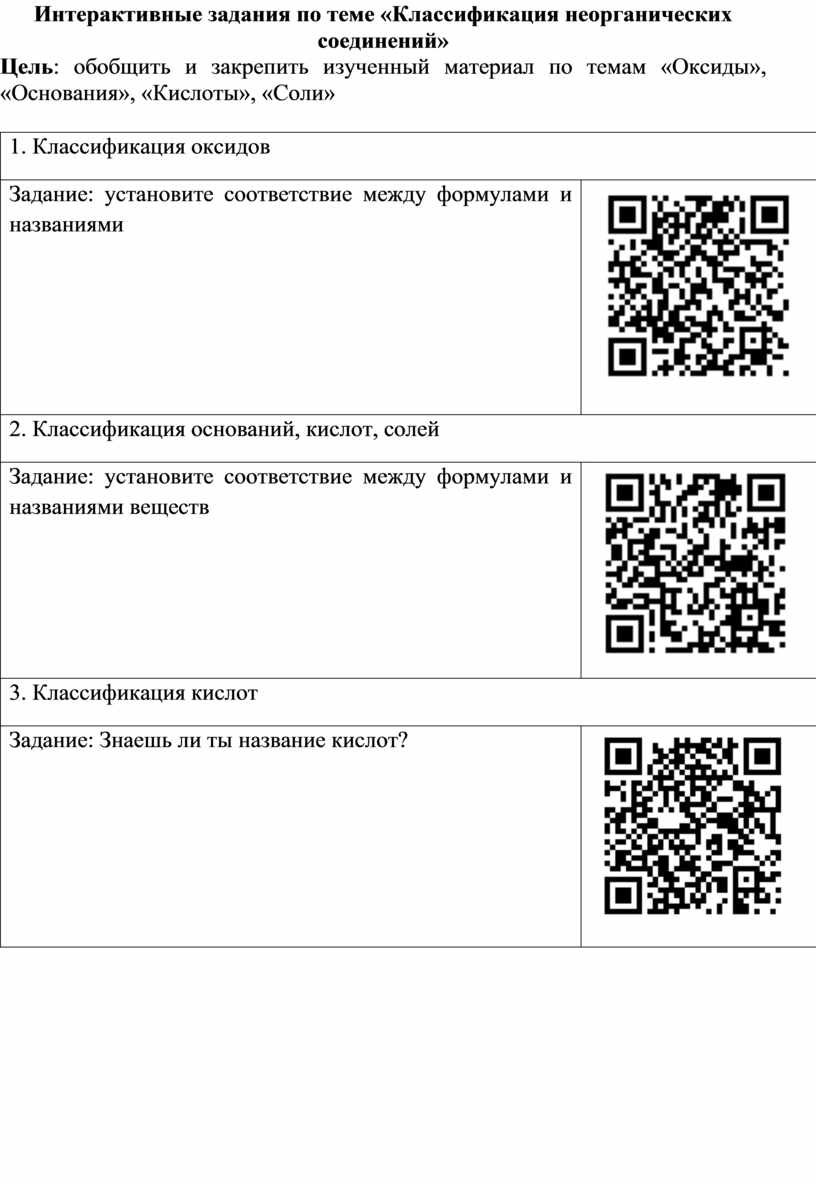 Интерактивные задания по теме «Классификация неорганических соединений»