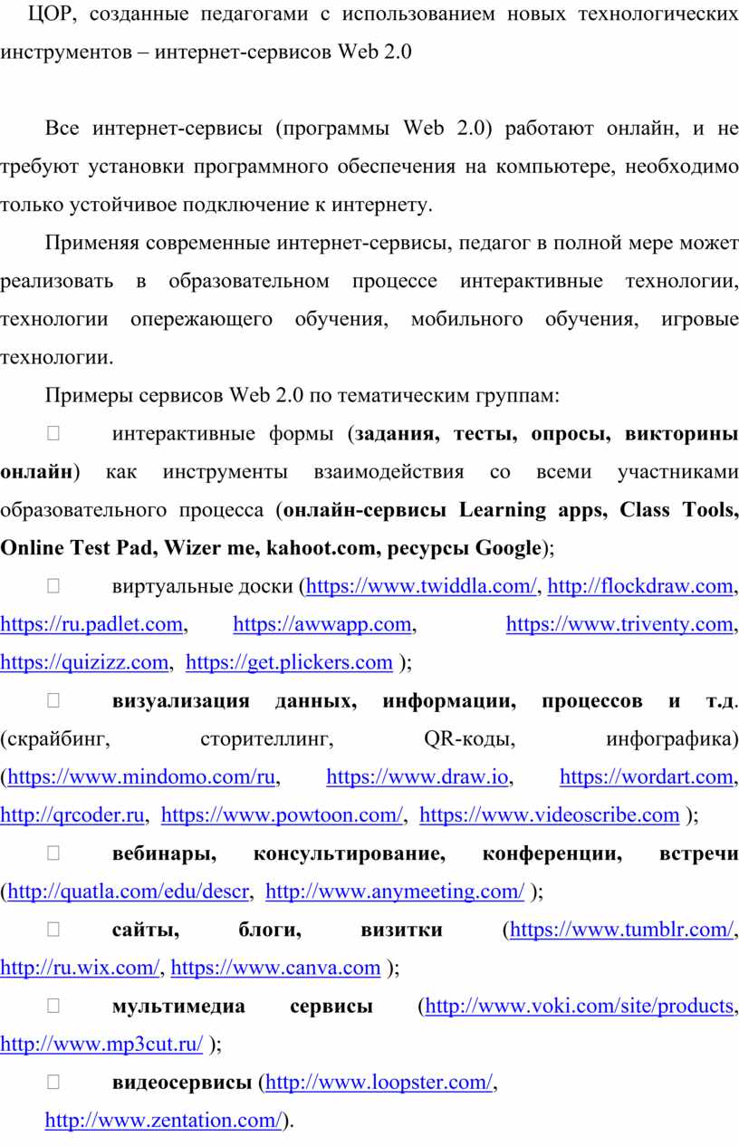 ЦОР, созданные педагогами с использованием новых технологических инструментов – интернет-сервисов Web 2.0