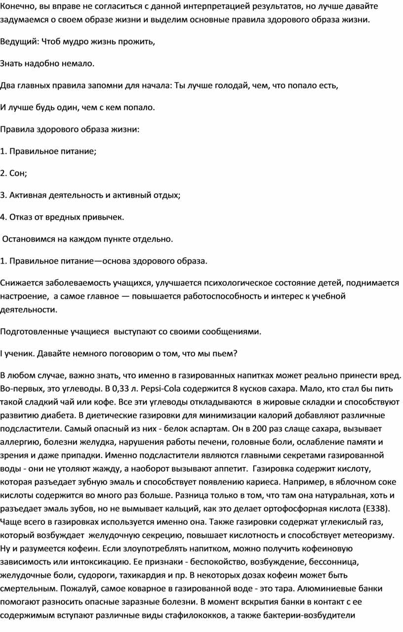 Ведущий: Переходим к одному из главных составляющих здорового образа жизни.