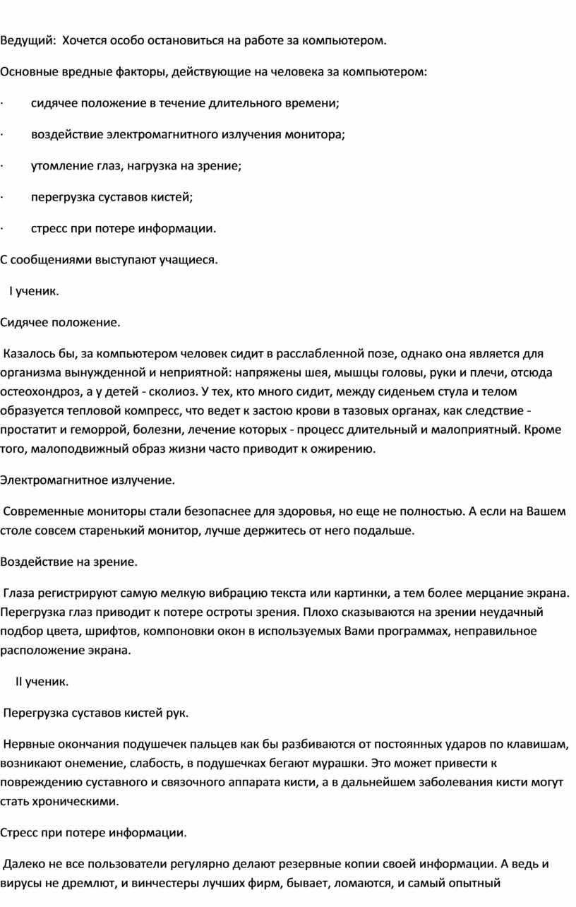 Ведущий: Хочется особо остановиться на работе за компьютером.