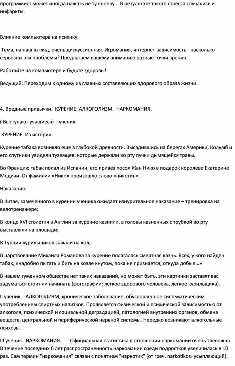 4. Вредные привычки. КУРЕНИЕ. АЛКОГОЛИЗМ. НАРКОМАНИЯ.