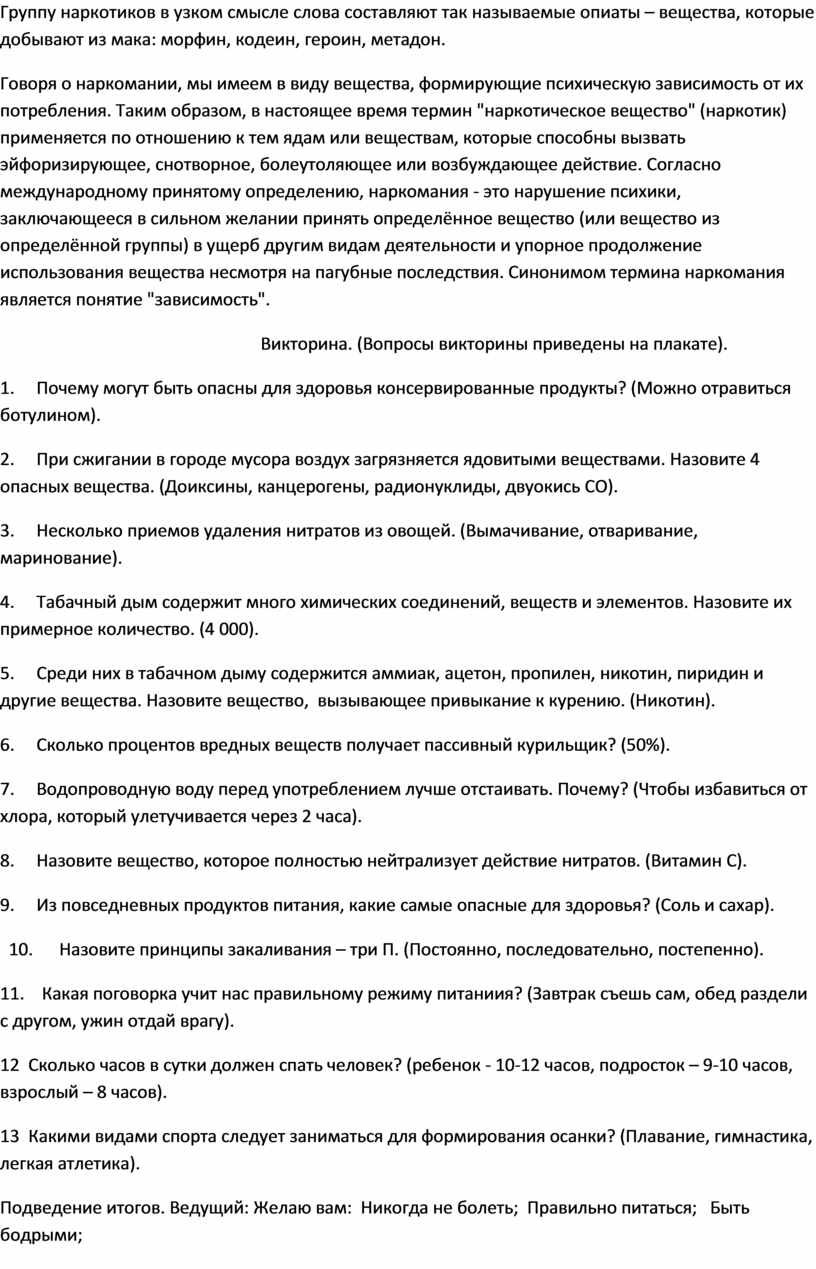 Группу наркотиков в узком смысле слова составляют так называемые опиаты – вещества, которые добывают из мака: морфин, кодеин, героин, метадон.