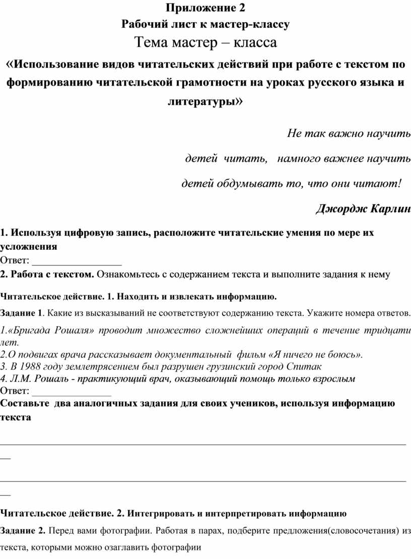 Рабочий лист к мастер-классу