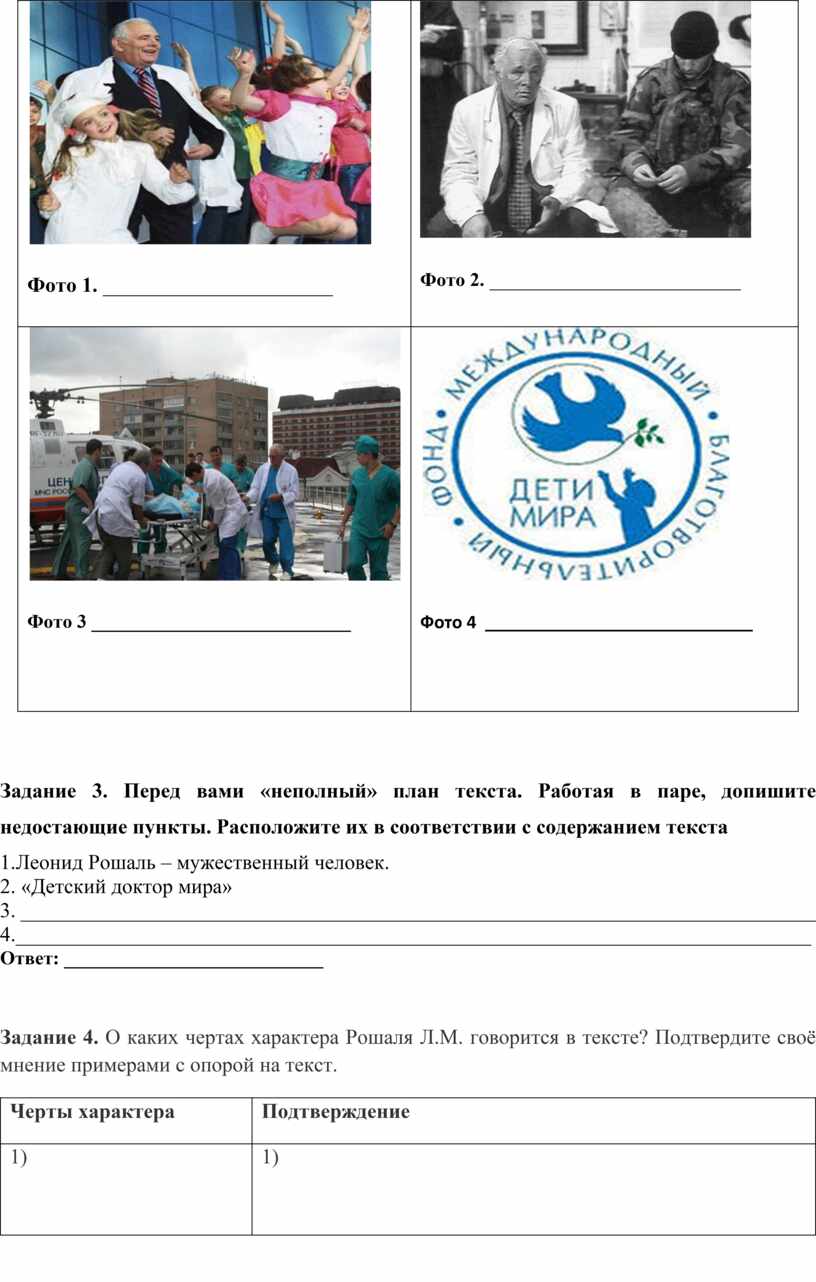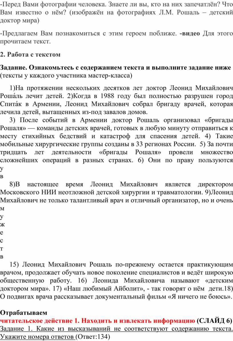 Задание 4. О каких чертах характера Рошаля Л.М. говорится в тексте? Подтвердите своё мнение примерами с опорой на текст.