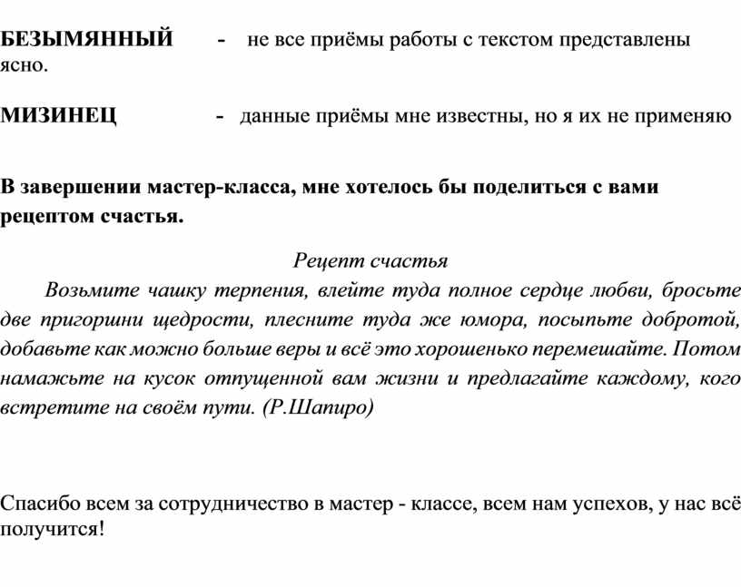 В завершении мастер-класса, мне хотелось бы поделиться с вами рецептом счастья.
