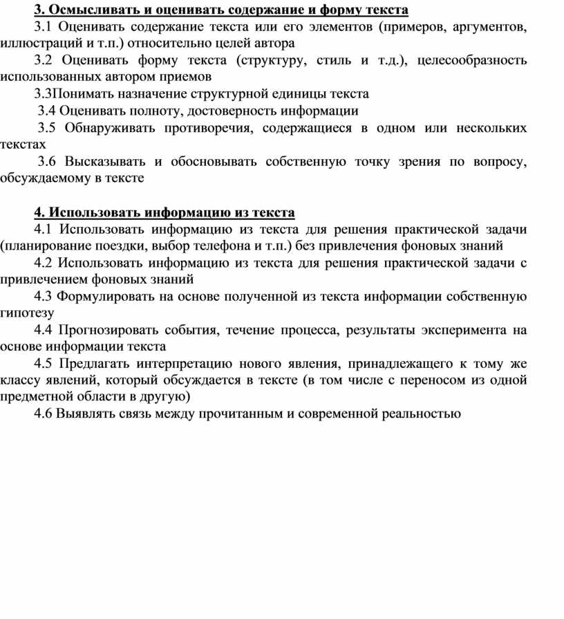 3. Осмысливать и оценивать содержание и форму текста