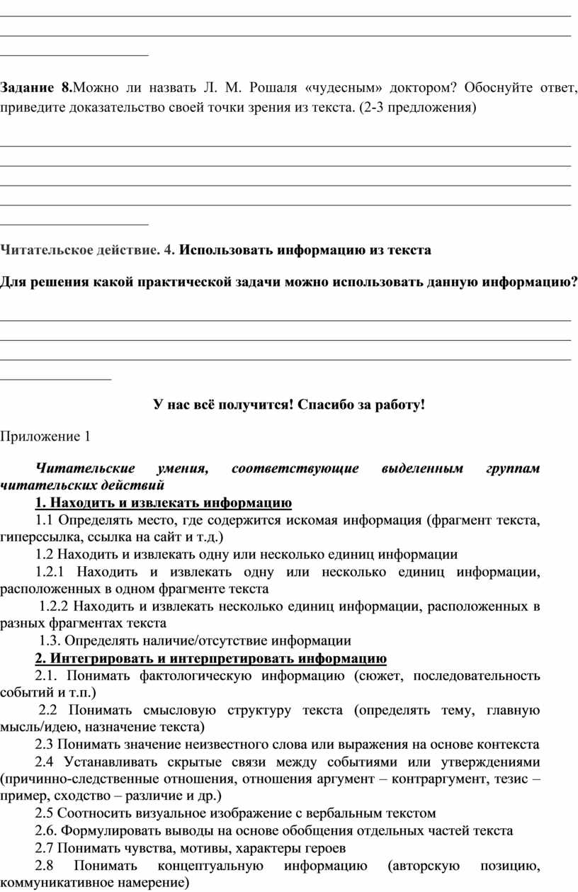 Задание 8.Можно ли назвать Л. М. Рошаля «чудесным» доктором? Обоснуйте ответ, приведите доказательство своей точки зрения из текста. (2-3 предложения)